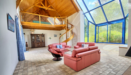 proche du blavet, longere rénovée maison refaite à neuf avec prestations haut de gamme. possède une indépendance, près de 7000m2 de terrain. maison à la campagne à 30 minutes de la mer. Au RdC un vaste séjour de 63m² avec plafond cathédrale, une vaste baie vitrée pour la luminosité, une cheminée moderne, sans oublié la mezzanine qui sert de salle de jeux, également de 63m². Belle cuisine équipée avec coin repas, une penderie et WC, une entrée avec four à pain. Deux belles chambres chaque une avec un coin lavabo, puis la suite parentale de de 37m² avec également un plafond cathédral, une baie vitré et une salle de bains avec balnéo et douche séparée. A l’étage, au-dessus de la cuisine vous avez deux autres belles chambres et une salle d’eau. En prolongation de l’habitation principale est un appartement indépendant avec cuisine aménagée, séjour, une chambre, salle d’eau et WC.