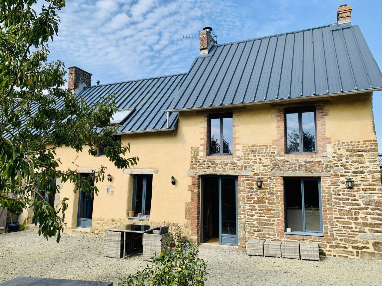 Maison à 10minutes des plages, 10 minutes de Granville(gare), 5 minutes tous commerces, écoles, collège. Maison en masse (terre) avec jardin clos au calme mais pas trop isolée, sans vis à vis.Maison mitoyenne mais ce sont des dépendances inhabitées.Il y a 3 chambres, rénovée avec des matériaux écologiques, poêle à bois performant et de qualité installé par un professionnel suffisant pour chauffer toute la maison.Portail électrique