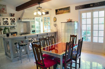 Très agréable maison sans vis-à-vis au pied du village de Grimaud bénéficiant d' un vaste séjour cathédrale avec cheminée insert, climatisation réversible, une cuisine américaine toute équipée, trois chambres, une salle de bain avec baignoire balnéo et douche à l' italienne, une salle d' eau.
