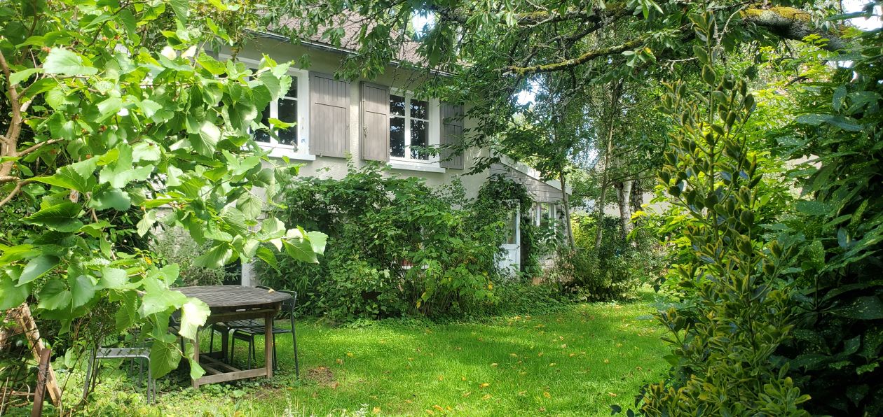 Maison Années 50 très agréable à vivre non mitoyenne avec jardin tout autour bien entretenue, très lumineuse, bien exposée (fenètres dans les 4 directions). ETAGE: entrée avec Wc séparés cuisine séjour parquet 2 chambres 1 salles d 'eau REZ DE CHAUSSEE: 2 chambres 1 salle de bains, garage, atelier/ serre extérieure de 15m2, jardin de 100 m2 avec potager en permaculture et arbres fruitiers, petite mare. A 100 mètres de la forêt de Fontainebleau, gare à 400 mètres train toutes les heures pour la Gare de Lyon (55 minutes). Très beau cadre de vie, village de charme avec tous commerces: école, médecins, supermarché, boulangerie, restaurants, ... à pieds. situé à 10 km de Fontainebleau,10Km Nemours et 10Km Moret sur loing.