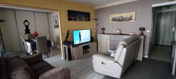 Jolie appartement de 3 pièces plus loggia site au 2eme étage d'un immoble en copropriété. Site a 30 kilométrés de Paris et a 800 metre de l'autoroute A13. Copropriété férmée et sécurisée avec video surveillance, à10 minutes de la gare SNCF(train pour Paris ST.Lazare) et dans un bref délais mise en service du RER. Fénétres et portes en double vitrage et chauffage collectif en biomasse Un belle chambre ,un salon et une salle à manger plus une loggia. Une cuisine américaine aménagée,armoire à mur et portes coulissantes. Place parking privée et cave. Immoble avec ascenseur et cable internet.
