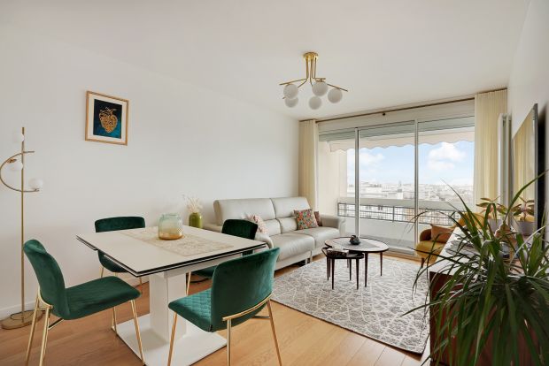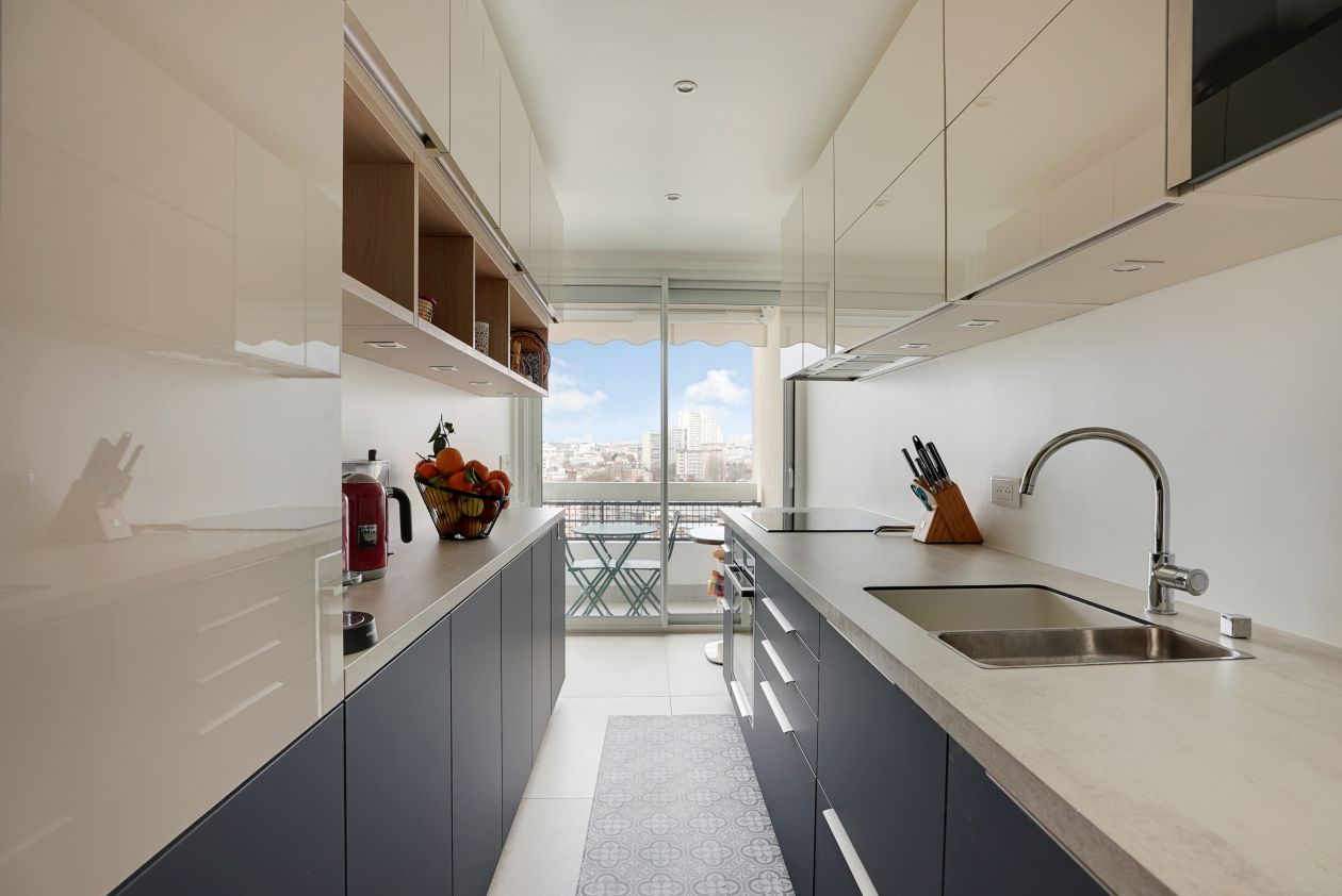 Beau 4 pièces d'une surface de 78m2 Carrez, cet appartement a été entièrement revu par architecte, refait à neuf en 2022, fonctionnel et lumineux et les volumes ont été retravaillés afin de convenir à une utilisation moderne et familiale. L’appartement est situé au 11ème étage avec ascenseurs, dans une résidence bien entretenue et sécurisée (gardiennage 24/24) donnant sur une esplanade arborée. Ce bien se compose : d’une entrée desservant le séjour, baigné de lumière grâce à son exposition Sud-Est, avec une vue dégagée sur les toits de Paris, une très belle cuisine indépendante, moderne et entièrement équipée, une buanderie très fonctionnelle. Le coin nuit se compose de 3 belles chambres (14,98m2 - 11,48m2 - 9,60m2), avec dressing dont deux avec un balcon de plus 7m2, une belle salle de bain avec baignoire, des WC séparés. Une cave et un emplacement de parking complètent ce bien. À 5 minutes à pied de la station de métro Porte de Vanves (Ligne 13), 3 minutes à pied de La station de tramway Didot T3A. La rue Didot est à 3 minutes à pied, avec ses commerces, brasseries, restaurants. Les établissements scolaires à 200m.
