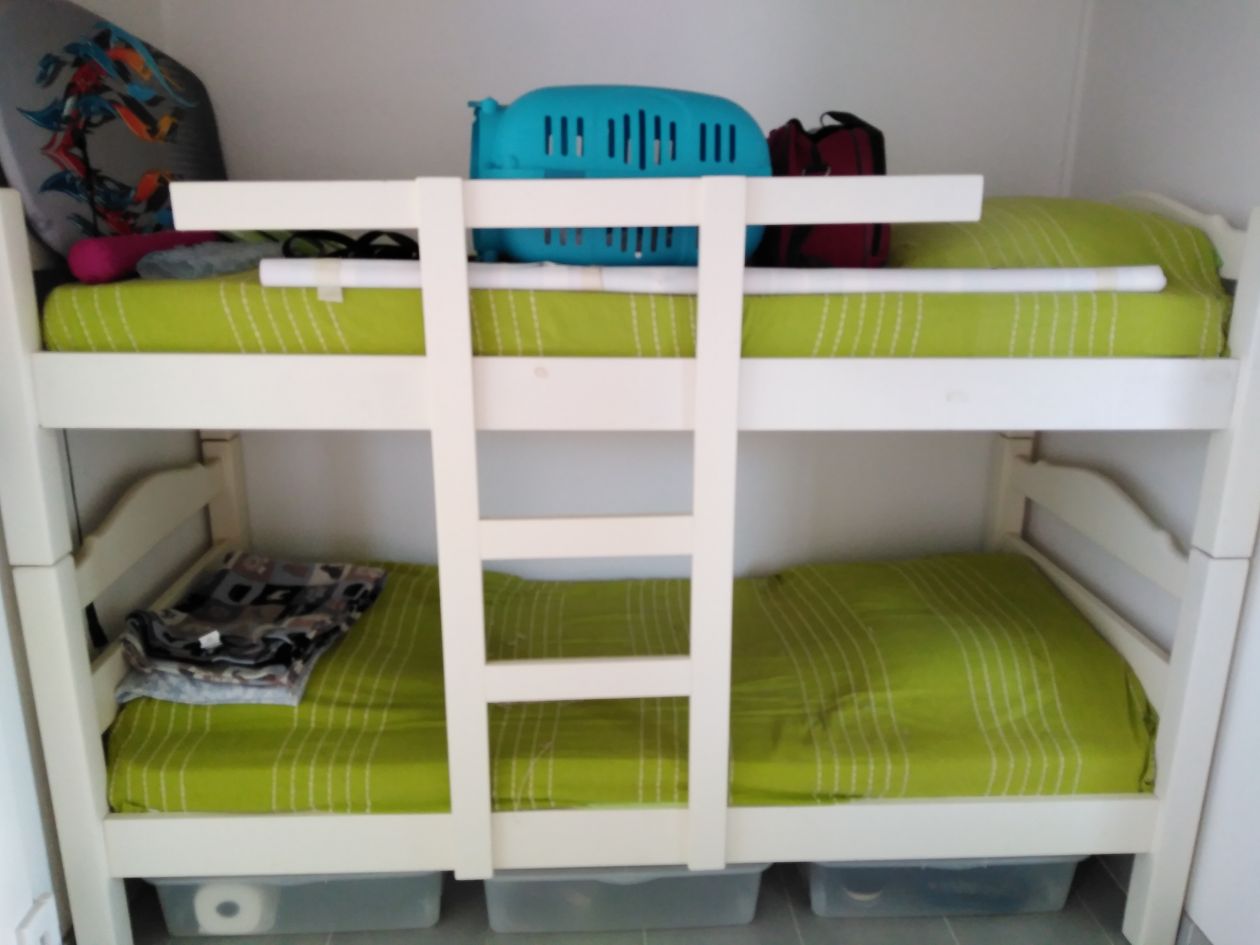 Le Grau d'Agde L'appartement rêvé pour tout faire à pied !!! A 50m à pied d'une belle plage de sable fin, au cœur du village du Grau d’Agde, de la place du marché, des commerces ouverts à l’année et de toutes les animations estivales. Appt T2 cabine vendu meublé de 35 m2 surface utile plus terrasse de 7 m2 (28 m2 carrez). Traversant et lumineux, 3 expositions, au 1er et dernier étage d’une petite résidence, sans parking. Entièrement rénové, carrelage, poutres apparentes, doté de fenêtres dans toutes les pièces et d’une climatisation. Au RDC : kitchenette/séjour/salon sur terrasse, cabine 2 lits superposés (matelas neufs), salle de bain avec meuble vasque, miroir, baignoire et WC. A l’étage : spacieuse mezzanine avec belle hauteur sous plafond (+1m80), un lit en 160 (matelas Simmons) avec 2 tables de nuits, commode, armoire, grands placards intégrés sous rampants avec serrures. Une vraie terrasse couverte avec petite vue mer et Hérault, table ovale, 6 chaises et banc, stores bannes. Rentabilité locative saisonnière assurée possibilité 6 couchages Parkings gratuits en front de mer ou rues adjacentes.
