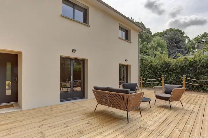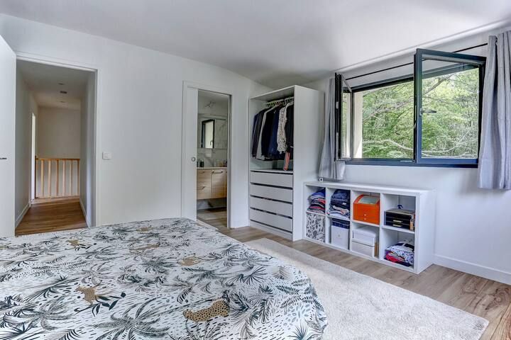 Maison neuve située en fond d'impasse, dans un cadre privilégié. La vue depuis la chambre donne directement sur une forêt protégée. La maison est neuve et se compose de : RDC Salon séjour avec une cuisine ouverte et un wc pour une surface de 70m2 1er étage : 3 chambres, dont une suite parentale, deux salles de bains 70m2 Sous-sol total avec buanderie et salle de sport. Une belle terrasse de 50m2 ainsi qu'un double garage (raccordé à EDF). La maison dispose d'une garantie décennale.