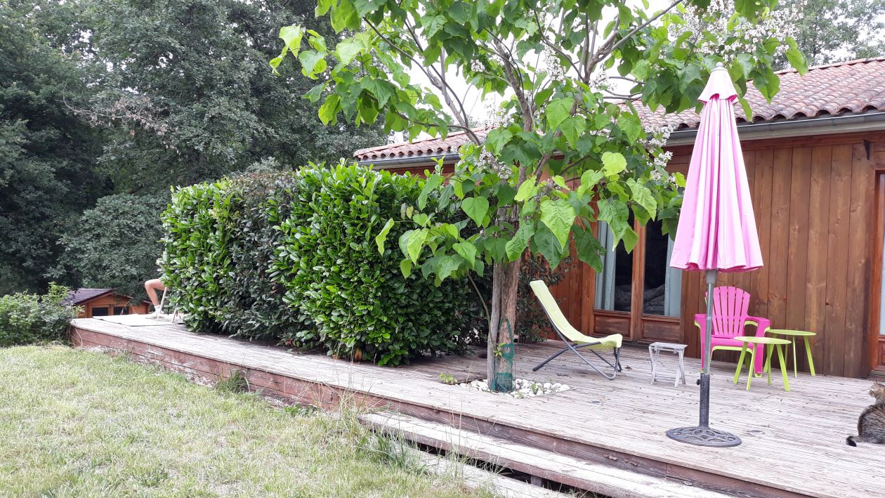 Bordé d’une forêt inconstructible, ce qui est rare désormais, maison de plain-pied, non mitoyenne, en fond d’impasse pour la tranquillité, implantée sur un terrain de 2637m2 entièrement paysagé, inondé de soleil.