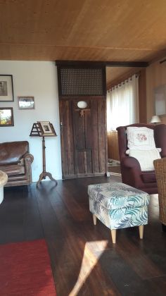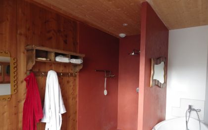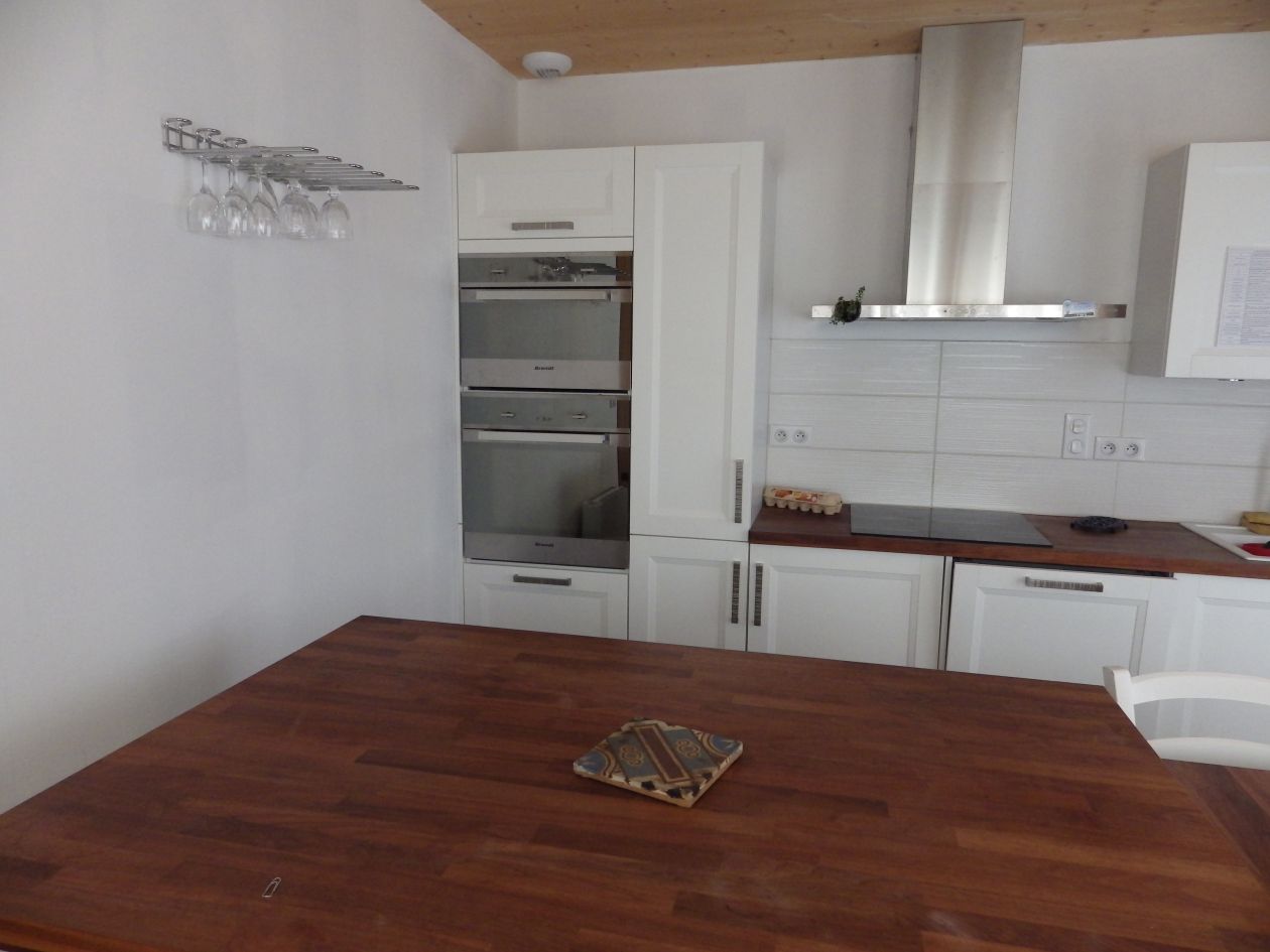 Prestations de qualité : parquet chêne massif sur lambourdes, fenêtres sur mesure, radiateurs stéatite, plan-vasque orme massif, cuisine Mobalpa, seuils en Padouk et Merbeau, essences nobles (douglas, pin, peuplier, mélèze)… : atmosphère chaleureuse et apaisante de chaque pièce.
