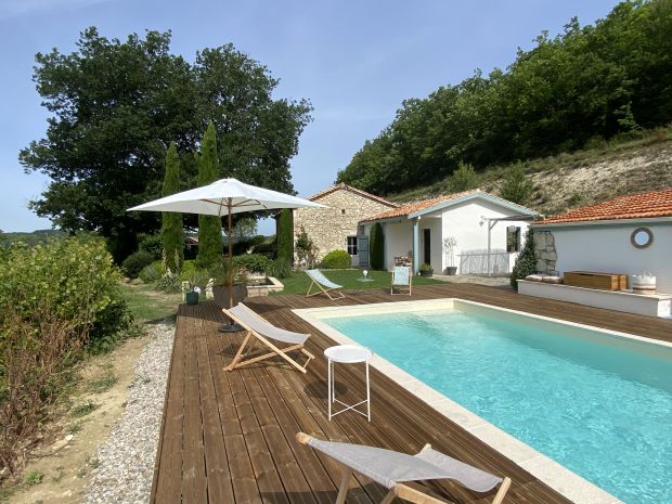 Maisonsur terrain d'un hectare composée d'un salle à manger avec cuisine ouverte équipée, d'un séjour avec poêle à granulés, de 3 chambres dont une en mezzanine, salle de bains avec douche et baignoire, toilettes indépendants, possibilité de créer une salle d'eau. Cagibi, carport, pool house, couloir de nage de 15m chauffé, aucun vis-à-vis, à 10' des commerces