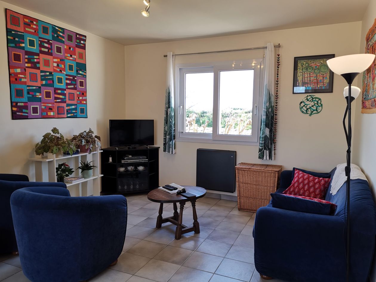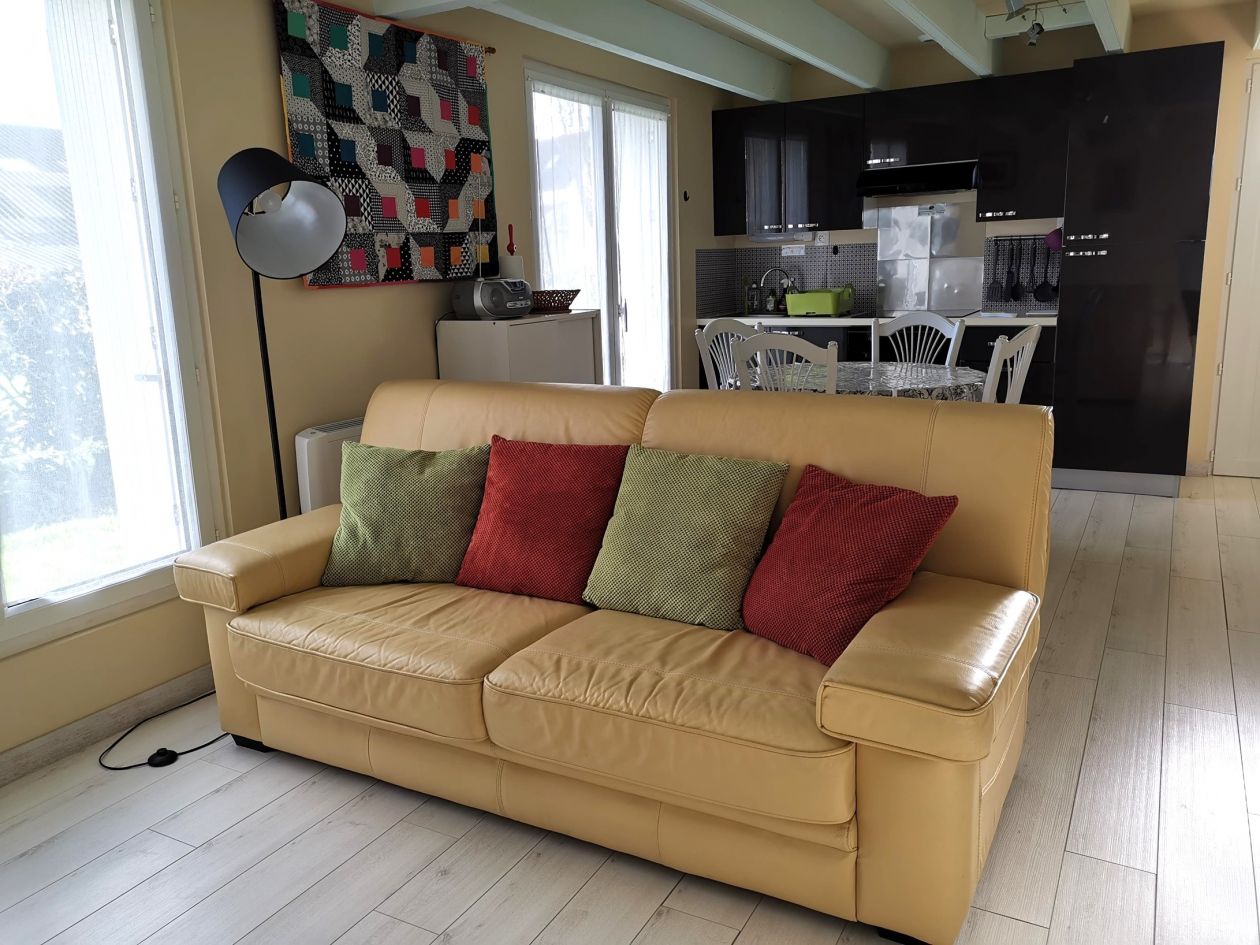 Gîte de 45 M2, séjour, cuisine, salle de douche au rez-de-chaussée, chambre à l'étage.