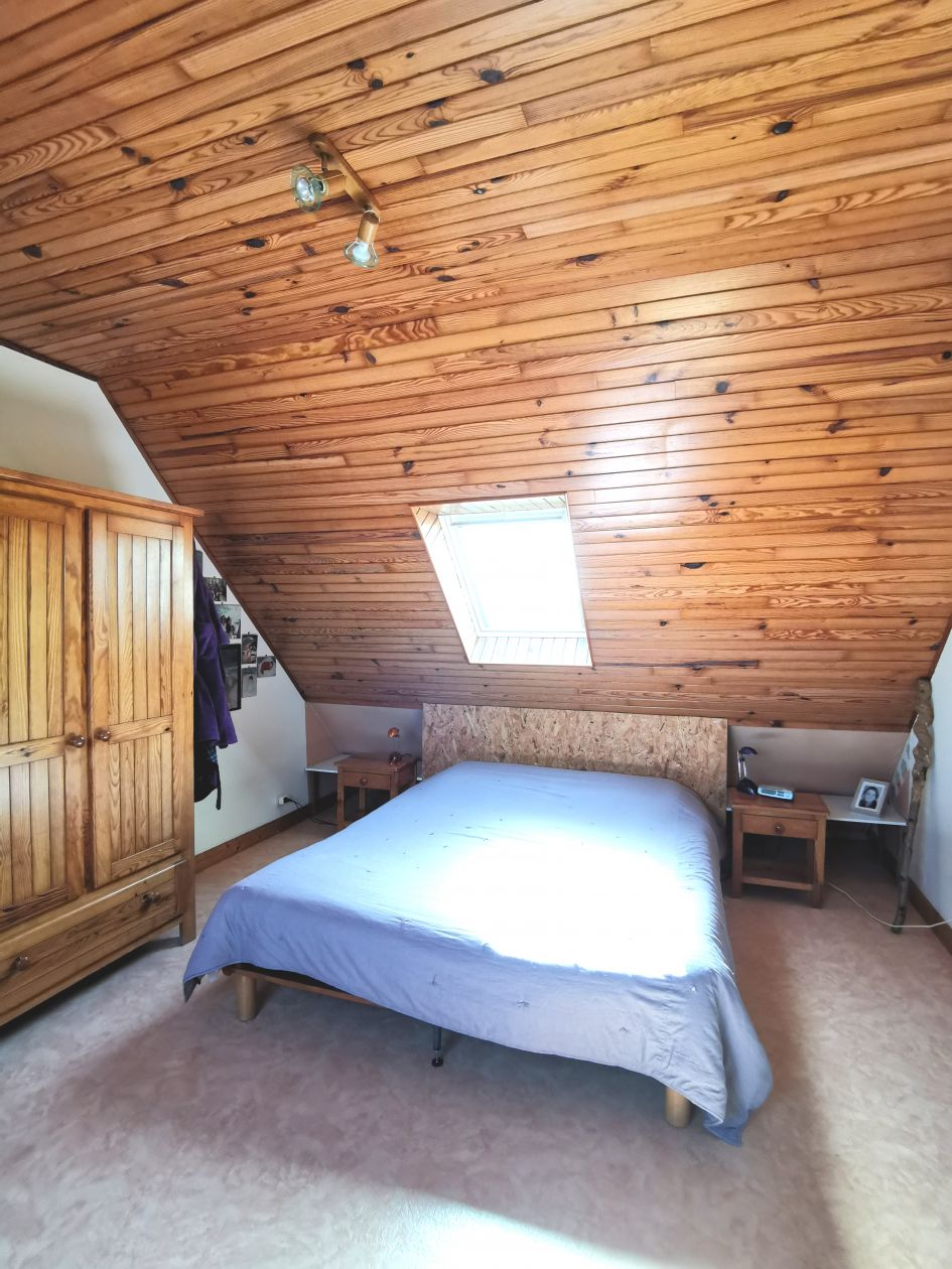 Au rez-de-chaussée : séjour lumineux de 30 M2 avec insert, chambre, cuisine indépendante (possibilité d'ouverture sur le séjour), toilettes. À l'étage, 4 chambres, salle de bain. Grenier sous les combles.