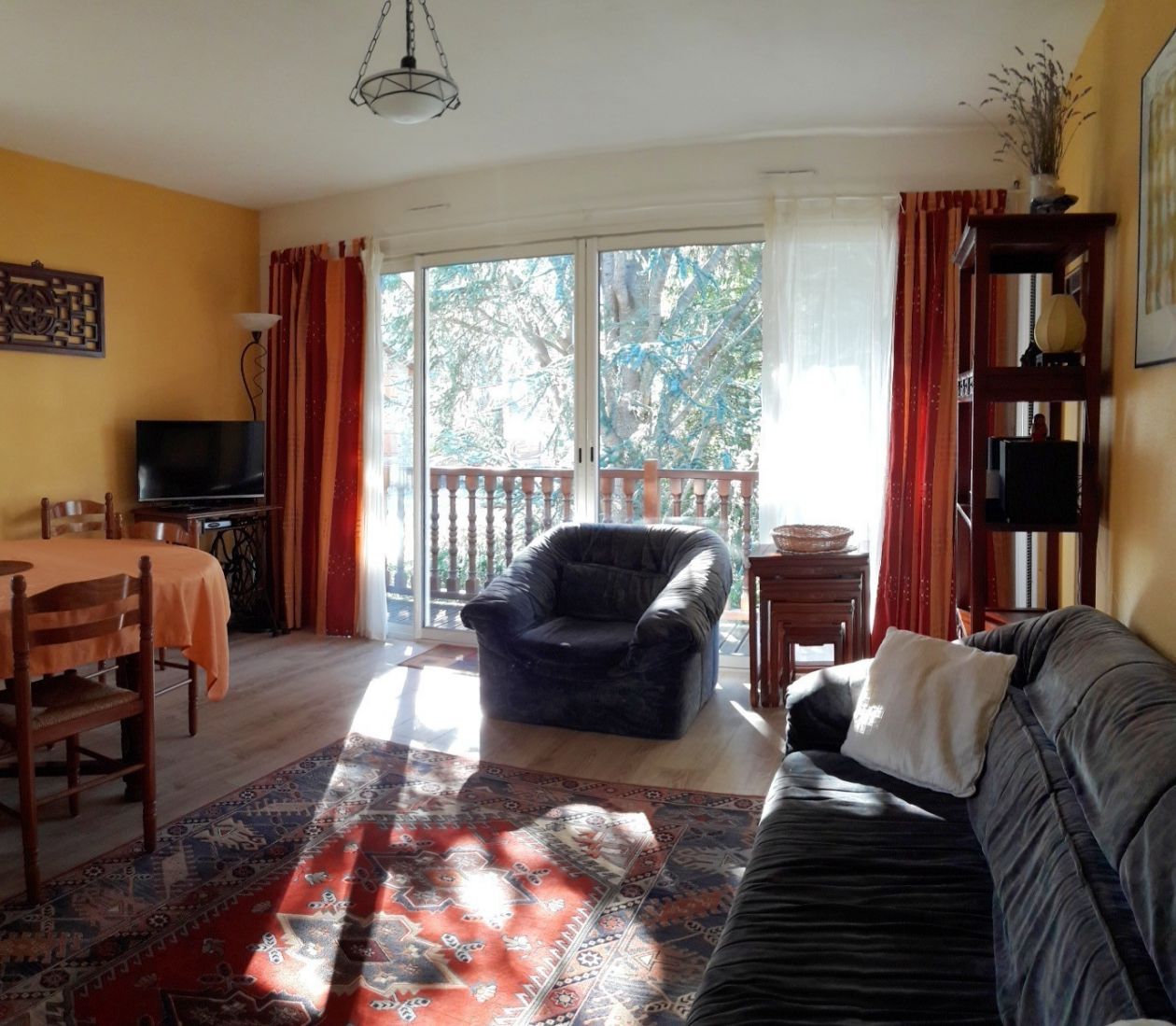 Dans le quartier résidentiel de St Lary Soulan, à deux pas du centre ville à pied. Les télécabines pour monter à la station de ski sont à 400m. Le logement est plus proche d’une maison que d’un appartement en ce sens qu’une fois passé la porte d’entrée, vous pouvez accéder au « garage » qui sert plus de grand débarras que de parking à voiture : une petite voiture pourrait sans doute y entrer. Il y a une entrée qui dessert un studio en RDC d’environ 30 m2 et un jardinet de 50 m² accessible depuis le studio et aussi de l’extérieur. Dans l’entrée vous accédez à un escalier en bois qui dessert le T4 qui est au premier et deuxième niveau. Au premier étage vous avez un salon plein sud bordé d’un balcon. Chauffage électrique. Il n’y a pas de cheminée mais il peut sans doute être envisagé de construire un boisseau extérieur avec l’accord de la copropriété (4 copropriétaires). La cuisine « américaine » donne sur le salon, dans le prolongement du couloir ouvert avec penderie, vous accédez à la première salle d’eau avec WC du T4 et une chambre mansardée où logent quatre lits d’une personne. Un deuxième escalier vous fait accéder au deuxième étage avec la deuxième salle d’eau avec WC du T4 qui sépare la deuxième et troisième chambre : une chambre est petite avec vélux mais un lit de 140 y loge. La deuxième chambre est plus grande avec un balcon à l’Est et une fenêtre au sud : une partie est marsardée elle doit faire environ 16m2.
