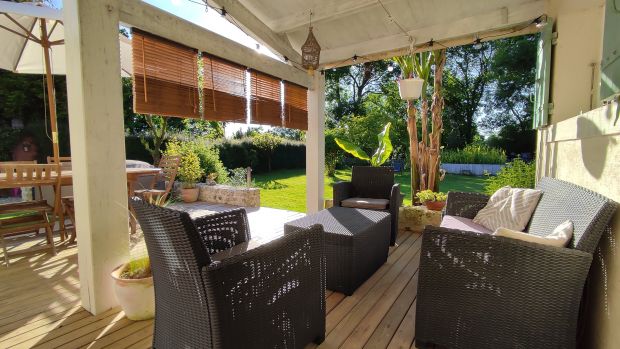 - La cuisine donne directement accès à une terrasse en bois neuve, idéale pour vos repas en plein air.