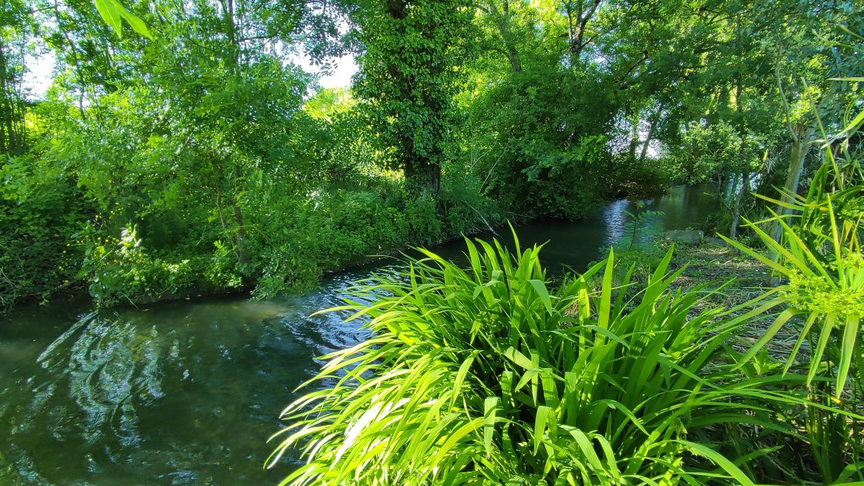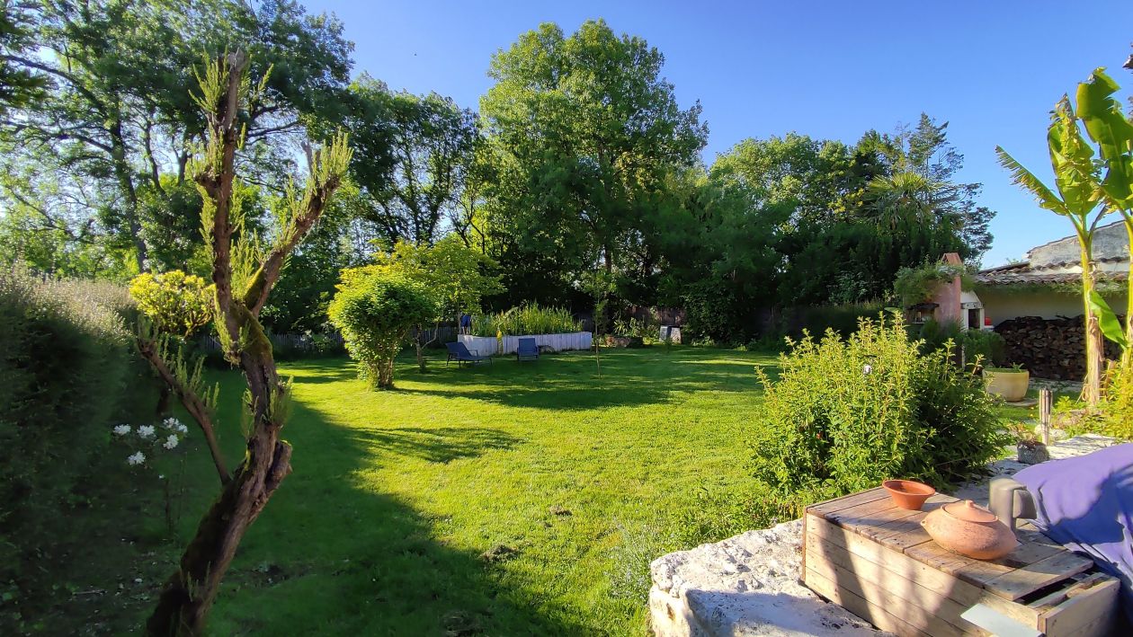 - Jardin arboré de 800 m² entourant la maison, avec un ruisseau en fond de parcelle.