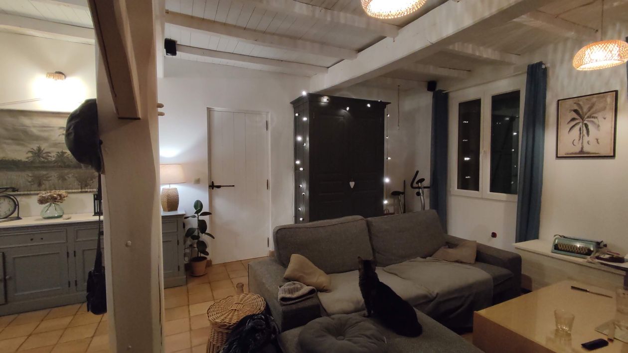 - Salon de 30 m², équipé d’un poêle à bois Chazelle à double combustion, parfait pour les soirées d’hiver.