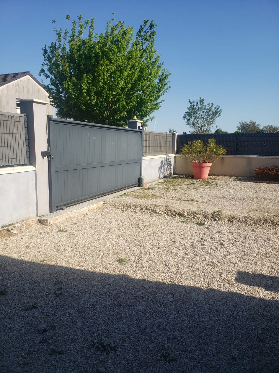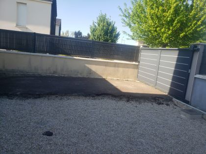 Un grand parking pouvant accueillir 5 véhicules avec double portails.