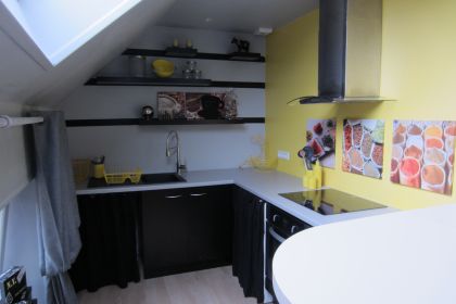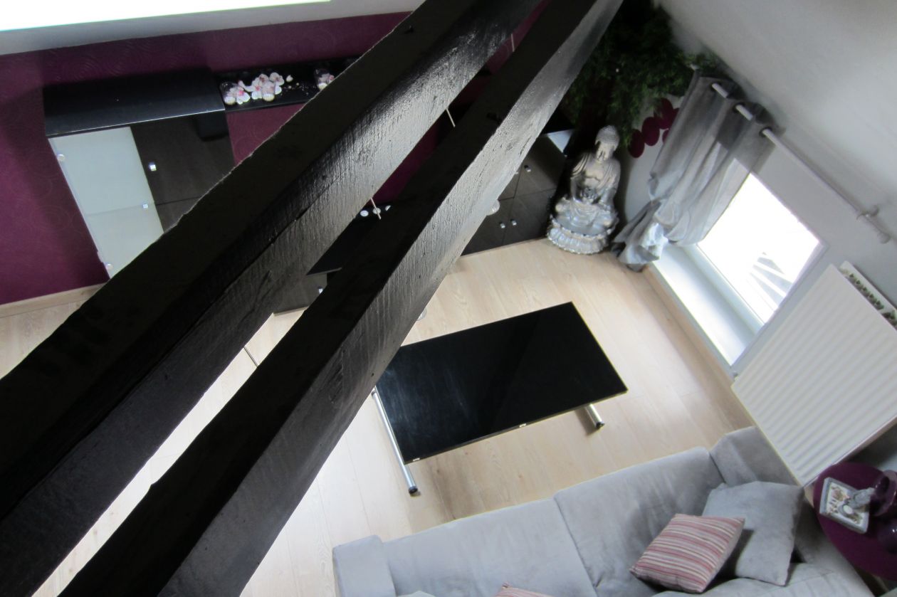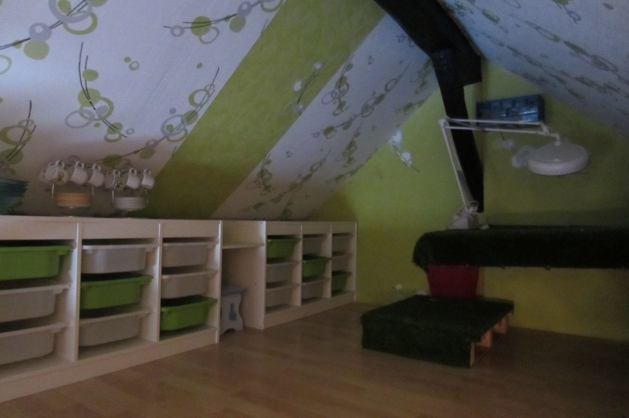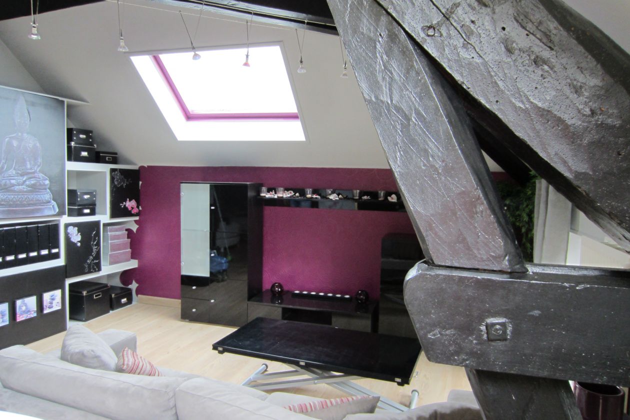 Celui proposé est au 3ème et dernier étage ce qui m'a permis d'exploiter les combles pour en faire une petite mezzanine qui me servait d'ateliers.