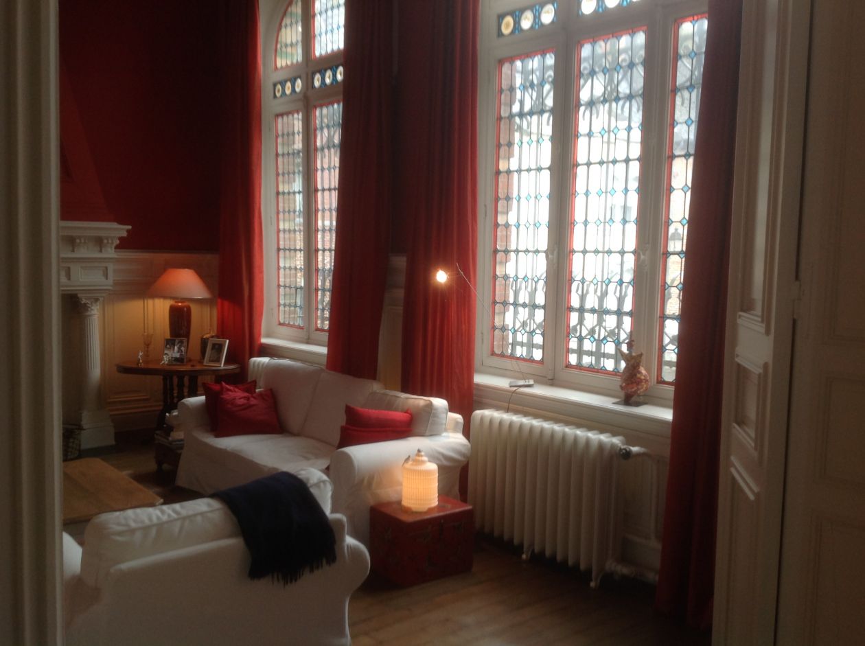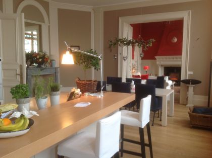 Chateau 19 eme siècle avec une belle longere comprenant 2 habitations distinctes. Trois entrees separees. Ideal pour chambres d' hotes ou gites. Le tout renove haut de gamme, grand confort et design, quelques nouveaux toits, nouvelles chaudieres, chassis fenetres double vitrage, salles de bains, cuisines etc. Interieur remarquable. Le tout erige sur parc de 30 ares avec beaux arbres, puits, bassin d' agrement, terrasse en bois etc. Description: Chateau: tres grand hall avec beau carrelage et magnifique escalier, salon avec haut plafond, vitraux, cheminee monumentale avec poele design bois, parquet, grande cuisine/ salle a manger avec cuisine ultra equipee Bulthaup ( ilot central travertin, 2 fours, taque induction, grill, tiroir chauffant, lave vaisselle etc.), WC (Starck) dans la tourelle, petit salon avec cheminee marbre, grande cave (egalement accessible par l' exterieur), 2 salle de bains ( l' une avec bain sur pieds, l ' autre avec douche design), 5 chambres, buanderie, extra salle de bains, tres grand grenier amenageable (fenetres deja en place), garage, avec etage et remise etc. Longere: première habitation: hal, wc, grand salon avec cheminee marbre et insert, salle a manger donnant sur la cuisine equipee, 2 chambres dont une avec salle de bains en suite (baignoire et lavabo), salle de bains avec wc, douche et meuble vasque, buanderie Deuxieme habitation: hal, buanderie, wc, bel escalier ancien menant a l' etage: grand sejour/salon avec magnifique plancher, cuisine ouverte moderne equipee, 2 chambres , salle de douche.