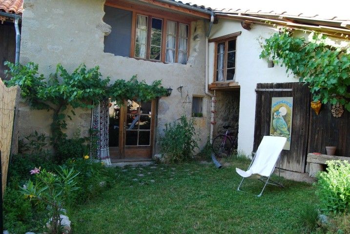 Maison mitoyenne des deux cotés sans vis-à-vis, plein sud, 114 m² patio 20 m² avec sources, terrain 300 m², petite dépendance 9 m². Rez de chaussée voûté : pièce a vivre, cuisine, salon, salle de bain ( douche ) /wc. Etage : grande pièce avec grande mezzanine, plus chambre avec mezzanine plus petite chambre d'appoint mansardée. poêle à bois pas de travaux a faire a 6km du premier village tout commerces