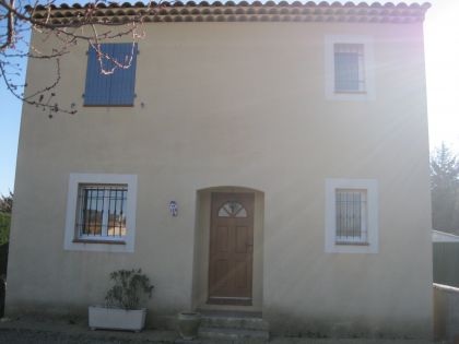 une entrée avec placards et un WC , une cuisine semi ouverte et une salle a manger de 27m2 , jardin clôturé de 700m2 avec piscine hors sol et terrasse couverte