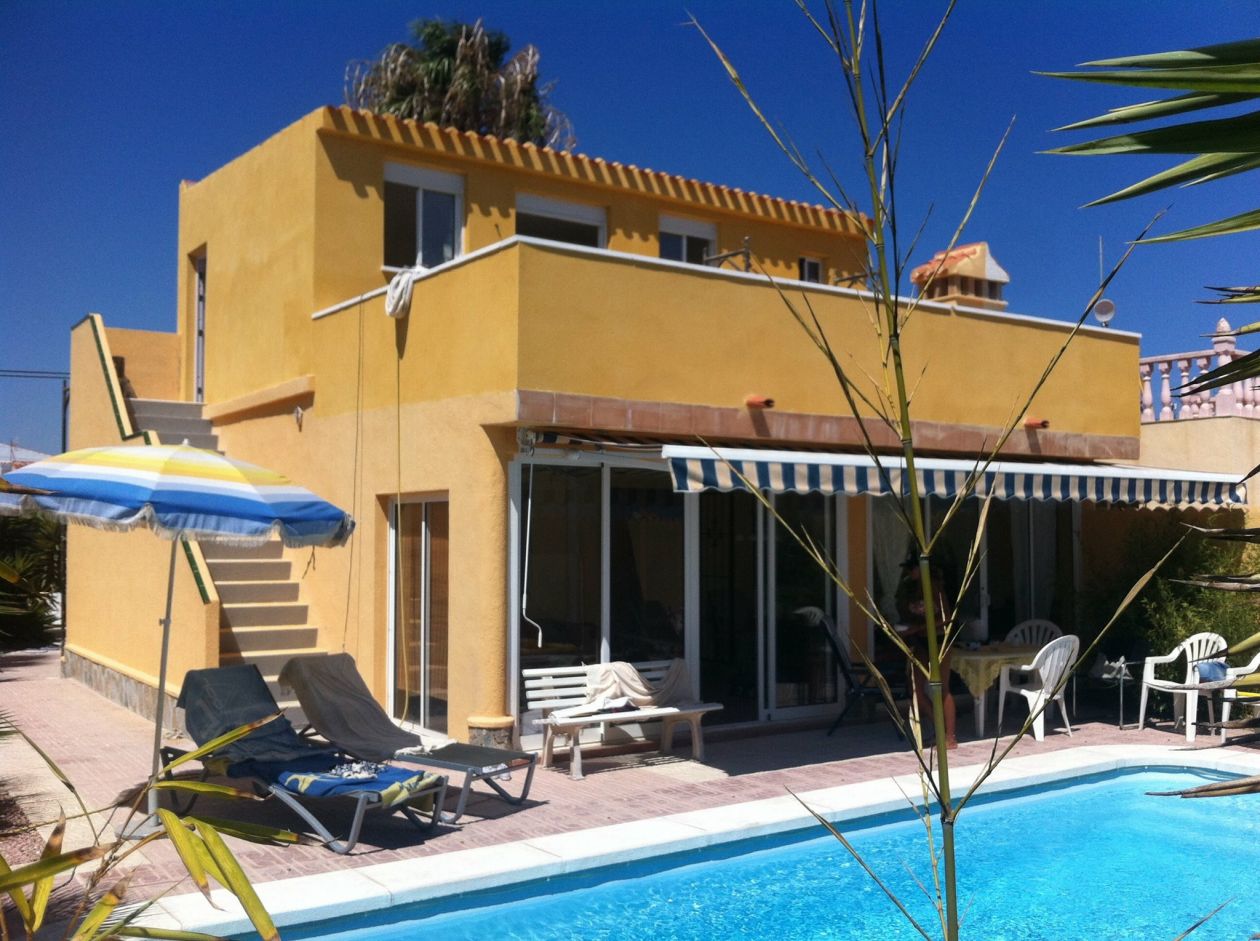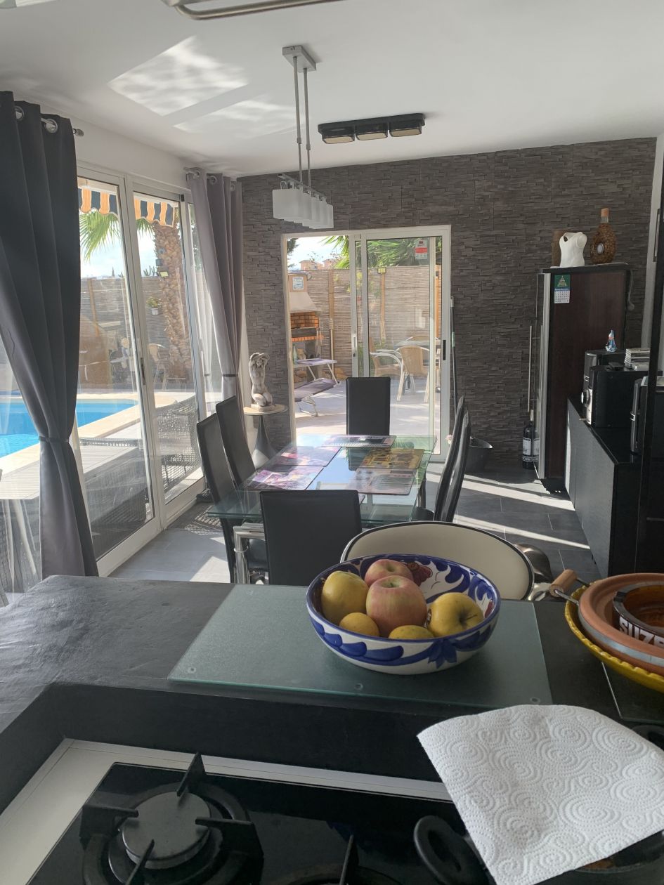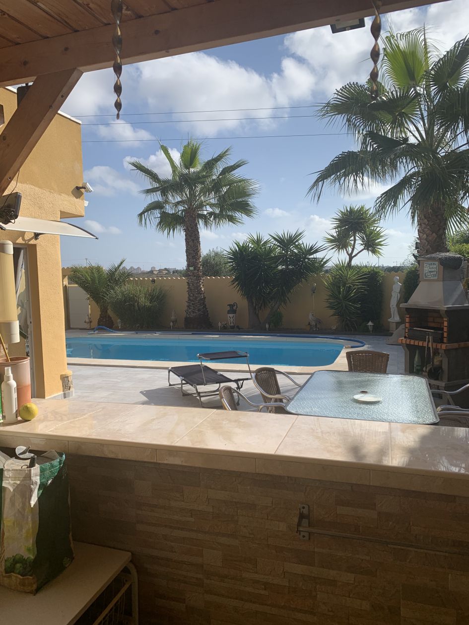 Villa située dans une cité balnéaire Torrevieja , proche centre ville et plage, toutes commodités à proximités. Travaux récents… 4 Chambres d'ont 2 complètement indépendantes. 1 salon - 1 salle à manger avec grandes baie vitrée donnant sur terrasse et piscine. 1 petite cuisine tout équipé. buanderie, cuisine d'été, terrasse, piscine 8x4 place de stationnement sur le terrain de la maison, et large place devant la maison. nombreuses plages à 5 minutes en voiture, nombreux magasins, restaurants, etc.... écoles, lycée, lycée Français à Alicante, aéroport à 30 minutes (Alicante et Murcia)