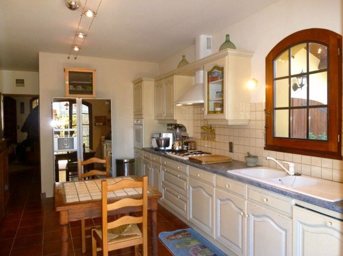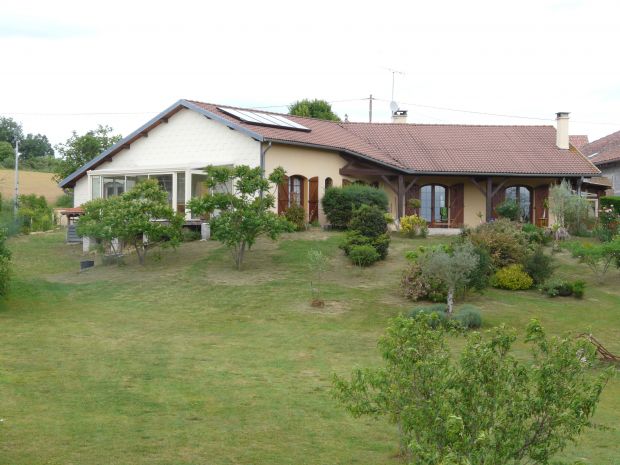 Belle maison d’architecte de plain pied de plus de 200m2 située dans un petit village tranquille avec vue sur Pyrénées. Localisation idéale par rapport aux départements voisins du Gers et de la Haute-Garonne. Cour goudronnée, clôture et portail électrique. Abri à voitures, et cuisine d’été avec four à bois. 2 garages attenant à la maison. Terrain de plus de 4800m2 arboré et fleuri. Cachet unique d’un cabanon en rondins au fond du jardin. Chauffage solaire et pompe à chaleur, double vitrage, isolation optimale. Combles aménageables. Vide sanitaire de belle hauteur sous la maison. Une belle pièce à vivre de 50m2 avec cheminée avec insert et poutres apparentes. Belle cuisine équipée. Buanderie. 3 chambres dont une avec salle d’eau. Une belle véranda lumineuse. 2 WC, une salle de bains avec douche et baignoire. Terrasse orientée plein sud.