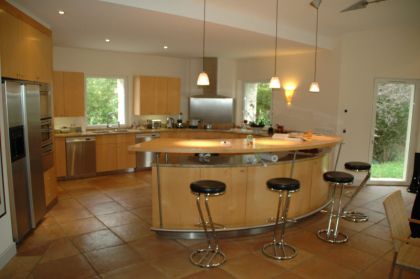 Maison principale composée au RDC (280m2 env): Hall, Vestiaire avec WC, Cuisine équipée (2 lave-vaisselle, broyeur, micro-onde, four vapeur, tiroir chauffant, plaque à induction, domino gaz, four, frigo US, machine à café intégrée, cuisine ouverte avec bar et espace salle à manger avec une cheminée, cellier, lingerie, salon avec cheminée US (Gaz) équipé home cinéma (écran rétractable de 3m), bureau, suite parentale avec dressing, douche à l’italienne et Baignoire balnéo, WC Séparés, chambre d’amis avec SDB et WC séparés. Terrasse au sud en IPE de 70m2env dotée d’une pergola bio-climatique «Solisystème» télécommandée. Terrasse à l’est en IPE de 12m2 env.