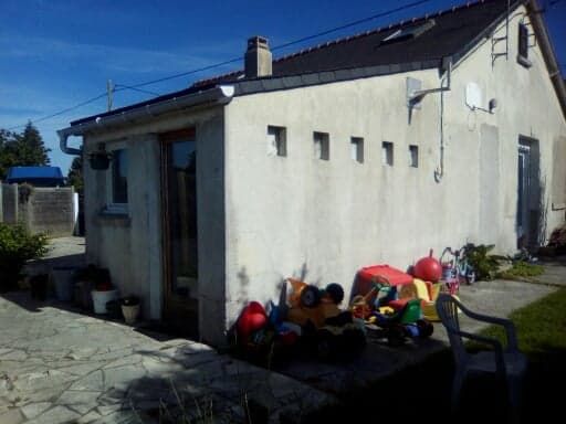 Bonjour, maison saine, au rdc : arrière-cuisine, cuisine ouverte sur salon/sejour, salle de bain avec wc et baignoire, couloir, 3 chambres A l'étage : couloir, 2 chambres, wc Jardin 500 m2 Garage Ecoles et commerces à 15 minutes à pied par la plage (ou la route) (2 minutes en voiture) 30 minutes de brest - landerneau - landivisiau , 10 minutes lesneven - plouguerneau