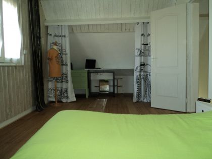 Au calme, proche de la plage et des commerces à 4kms, maison de 105 m2 une mitoyenneté composée : - salon, séjour, lumière traversante - cuisine séparée avec porte fenêtre donnant accès sur le jardin arrière - une grande pièce de 2 4m2 pouvant faire office de 4ème chambre, bureau, salle de jeux, etc - 3 chambres à l'étage avec salle d'eau - terrasse de 35 m2 - garage et allée pour 3 voitures